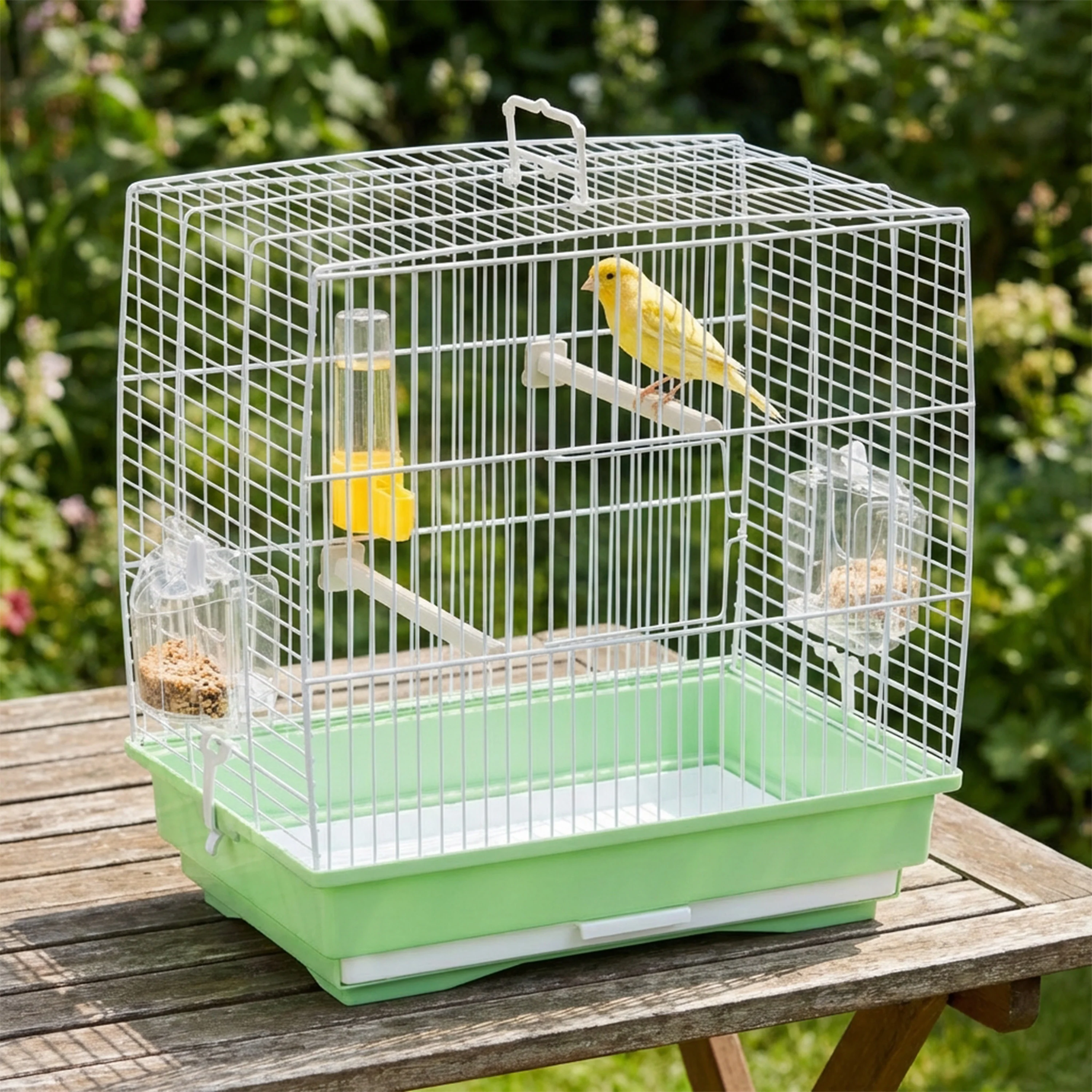 Rekord 1 es una jaula rectangular para canarios, aves exóticas y otros pájaros pequeños. Tiene asa de transporte y está hecha de malla de alambre que ha sido barnizado de blanco, con una robusto base de plástico. Rekord 1 viene completa con accesorios esenciales, incluyendo el bebedero plástico, perchas, y el comedero Brava 1 giratorio extraíble. La limpieza es rápida y fácil, gracias a una bandeja de recogida de suciedad.